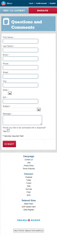The interactive image on the right showscases Barack Obama's website. It not only demonstrates a proper usage of fundamental digital design principles and best practices discussed in this module but also the responsiveness to target varying real estate areas (screen sizes).